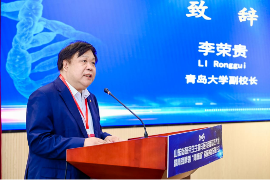 开幕式上,李荣贵代表学校向出席本次活动的各兄弟院校、政府机构代表、生物与医药领域企业、青岛啤酒研发中心的领导、专家和参赛选手代表表示热烈的欢迎,向长期以来对学校事业发展给予的大力支持表示由衷的感谢。他简要介绍了青岛大学办学历史,以及学校近年来在人才培养、学科建设、科学研究、服务经济社会发展等方面取得的成绩,特别是生物与医药学科在研究生教育工作中取得的突出贡献。他表示,本次活动旨在贯彻习近平总书记关于研究生教育的重要指示精神,是落实全国、全省研究生教育会议部署要求的具体举措,是山东省生物与医药学科研究生培养领域重要的赛事之一,通过相互学习、切磋技能,积极营造重实践、重应用、重创新的良好氛围,对进一步深化我省研究生教育高质量发展和提升实践育人水平具有重要的意义。希望以本次活动为契机,加强沟通交流、密切合作、凝聚智慧力量,共同推动生物与医药学科的融合与创新发展,为建设健康中国贡献力量。