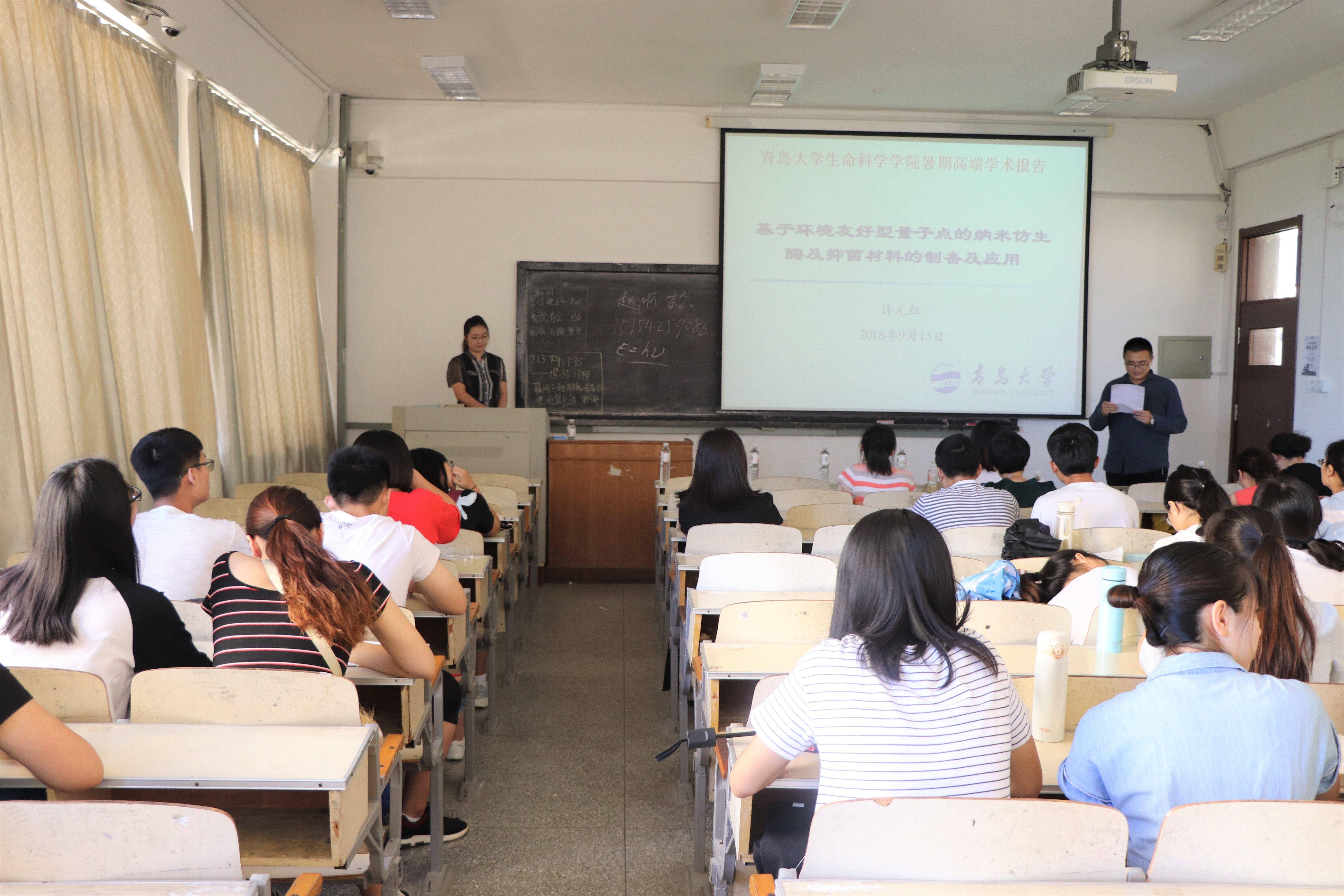 9月13日上午,青岛大学特聘教授、永利国际(中国)官方网站 博士生导师许元红教授在博知301教室作了题为《基于环境友好型量子点的纳米仿生酶及抑菌材料的制备及应用》的学术报告。这是永利国际(中国)官方网站 夏季学期高端学术报告的第9场,报告会由永利国际 生物技术系副主任常诚主持,永利国际 相关专业师生共计60余人参加了本次报告会。