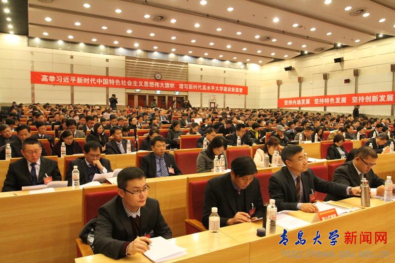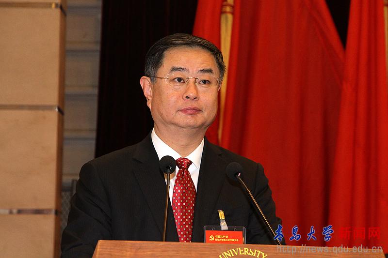 胡金焱代表中国共产党青岛大学第二届委员会作报告