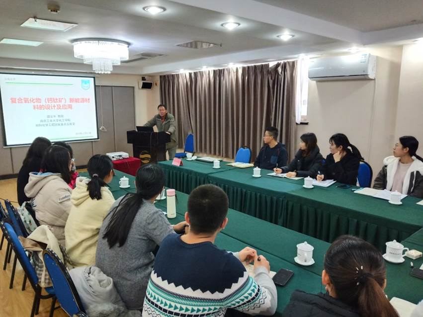 报告伊始,邵宗平教授对复合氧化物(钙钛矿)的类型及元素组成进行了简单的普及。然后对钙钛矿材料的理论设计进行了详细的介绍,在整个讲解的过程中教授用幽默风趣的方式向大家传授了重要的理论知识及实验思路,所举的例子来源于生活又全部融入科研之中,让大家深刻认识了学术科研的魅力所在。随后邵教授讲述了他从博士期间至今围绕钙钛矿做的主要研究工作,包括燃料电池、氧还原/析出反应、氢析出反应、环境处理、储能电池、太阳能电池、CO2/N2还原、热电等方面。从一种钙钛矿材料的设计到一步步的探索改进,每一次都有新的发现并且可以延伸出多个方向,这个思考过程是每一个科研人需要学习和培养的。最后邵教授与参会师生就相关问题互动交流,现场学术氛围浓厚。