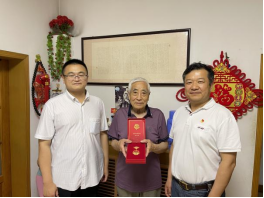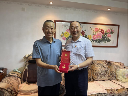 党委走访慰问“光荣在党50年”老党员工作,学校党委书记薛冰、院长许元红、副书记李永春等一行前往离退休老党员家中走访慰问,并颁发“光荣在党50年”纪念章。该纪念章是党中央2021年首次颁发的纪念章,纪念章颁发对象为健在的截至2021年7月1日党龄达到50周年,一贯表现良好的党员。五十年党龄,五十载光荣,浓缩在一枚沉甸甸的纪念章里,纪念着一段段不平凡的岁月。