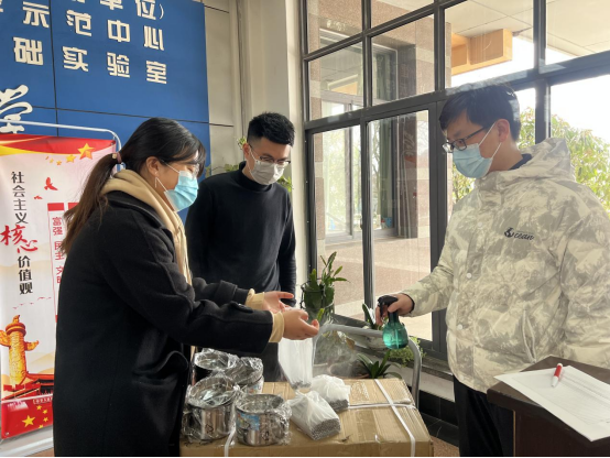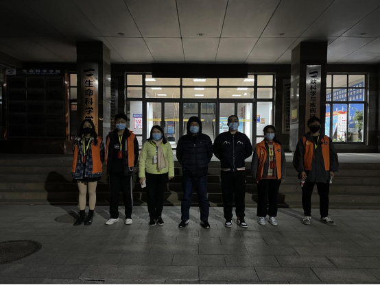 研究生党员志愿先锋队全体党员临危不惧、挺身而出、逆行而上,冲锋在前,在疫情防控工作中践行初心和使命,积极做好宣传“小喇叭”、当好攻坚“排头兵”,筑起一道道“防疫堤”。积极开展教学楼宇内的实验室用品的搬运和室内的消杀、宿舍卫生、核酸全员检测组织协调、口罩佩戴检查和校园内部分重点区域的食品安全督察等文明督导工作,他们用实际行动诠释着铮铮誓言,筑起抗击疫情的“中流砥柱”!