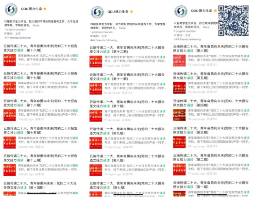 官网微信“活力生命”公众号设立诵读专栏,打造每日云端课堂新体验,至今已连续推送18期。全体学生党员在声情并茂、准确无误、流畅清晰的基础上用声音诵读报告,用声音感悟伟力,用声音传递力量,深入领悟党的二十大报告重要思想、战略和举措,在读原文、学原著、悟原理中强化责任感和使命感。
