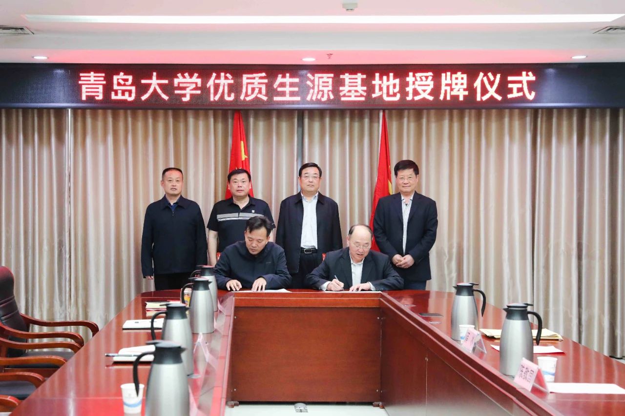 党委书记薛冰一行赴单县教育局开展本科招生拓展工作,双方在在湖西大厦会议室举行“青岛大学优质生源基地”授牌仪式,县委书记耿振华出席、县委常委、县委办公室主任刘继君、县委教育工委常务副书记、县教体局局长黄志立、县教体局党组成员、单县第一中学校长王腾香出席,薛冰代表学校为单县第一中学授予“青岛大学优质生源基地”。