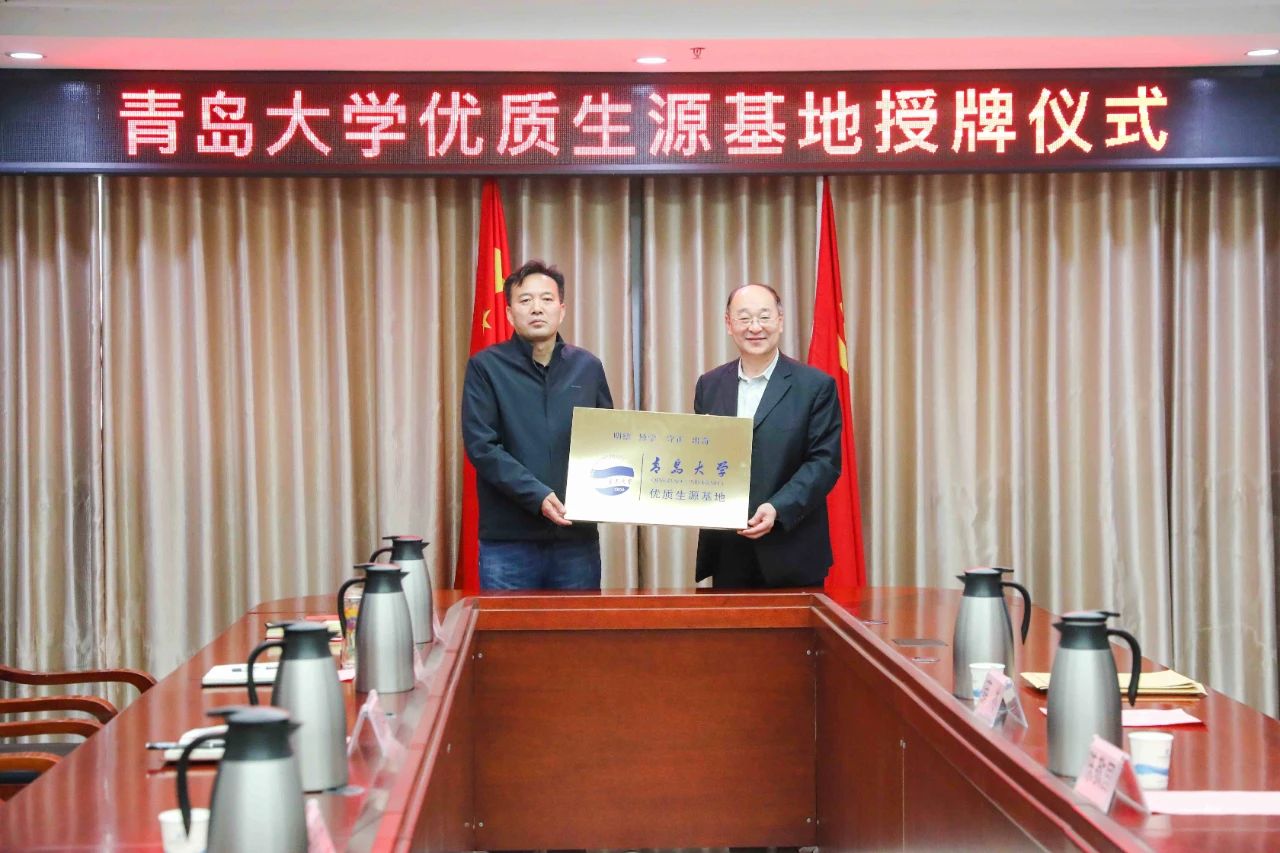 活动现场,王腾香代表学校接受了“青岛大学优质生源基地”授牌,并感谢青岛大学长期以来对我校发展的关心与支持,简要介绍了我校教育教学以及近年来取得的成绩,表示今后会加强沟通联系,向青岛大学输送更多更好的生源。