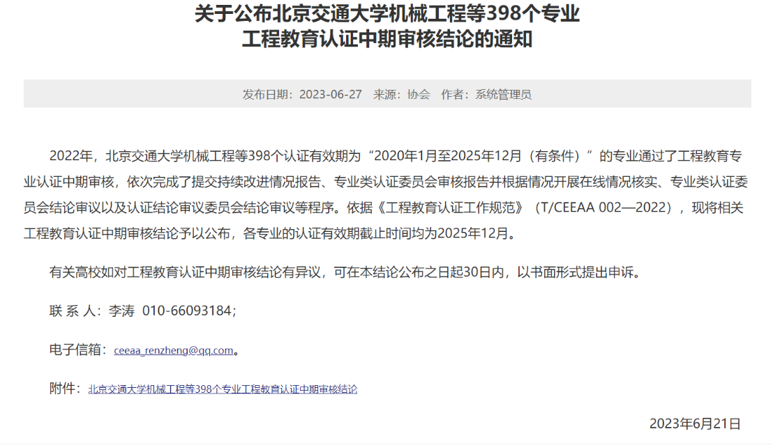 6月27日,教育部高等教育教学评估中心、中国工程教育专业认证协会公布了2023年工程教育专业认证结论,永利国际(中国)官方网站
