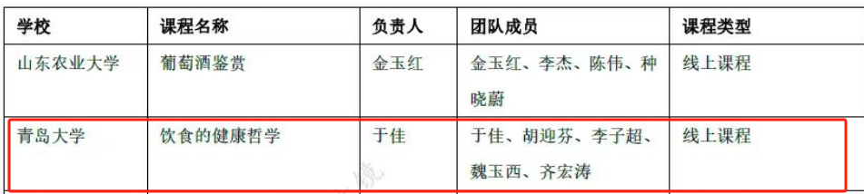 于佳老师主持,胡迎芬老师、李子超老师、魏玉西老师、齐宏涛老师作为团队主要成员的《饮食的健康哲学》线上课程入围国家级一流本科课程评选。