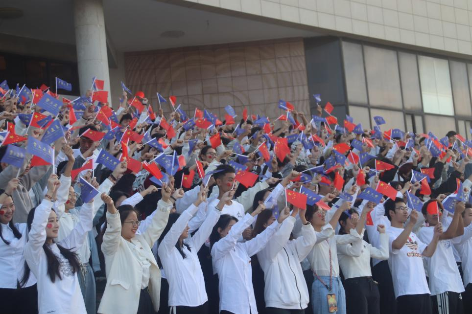 《我爱你中国》在操场上方缓缓响起,同学们共同祝愿伟大的祖国生日快乐、繁荣昌盛。嘹亮的歌声,爱国情感与迎风飘扬的国旗交相辉映。