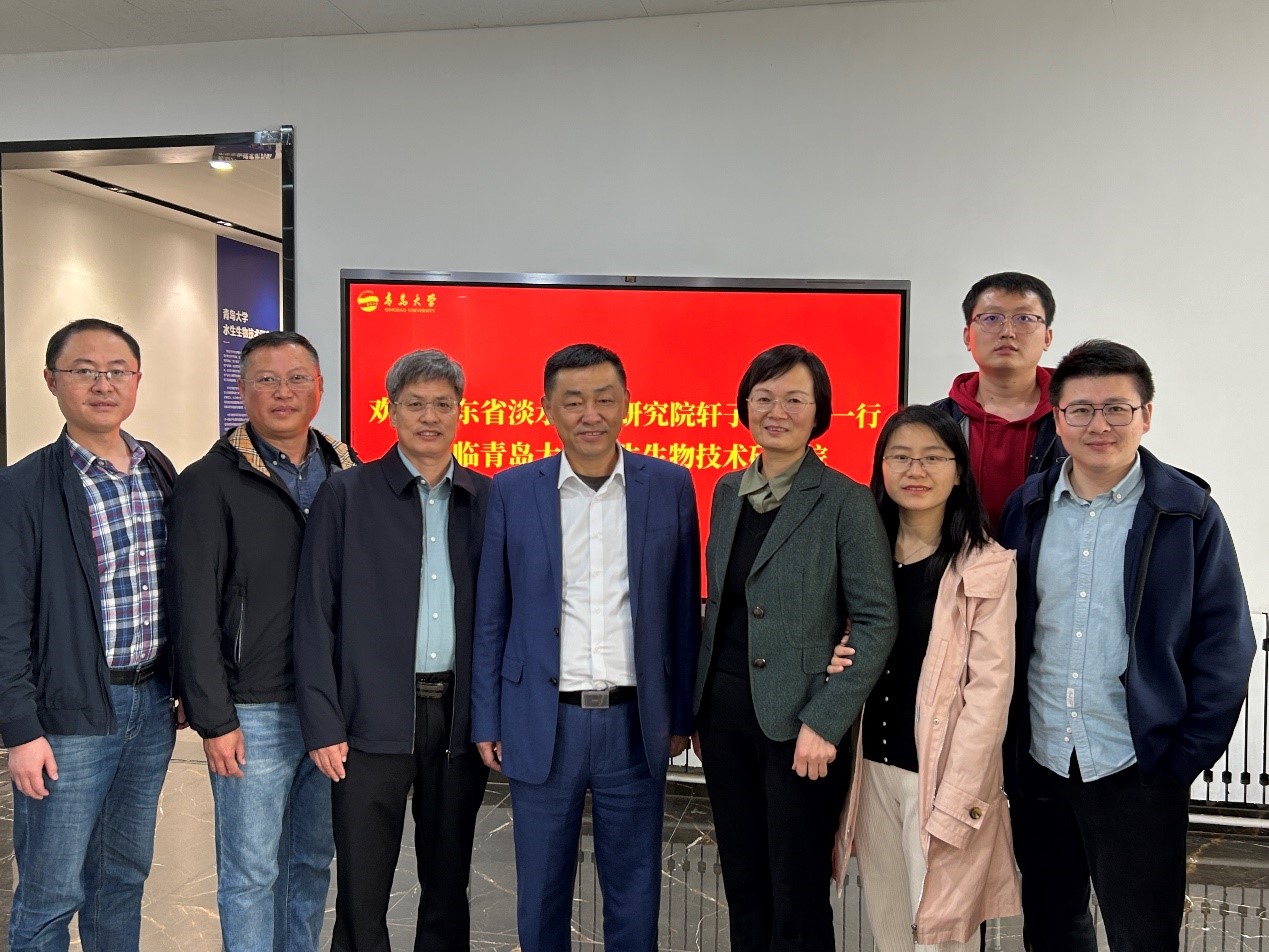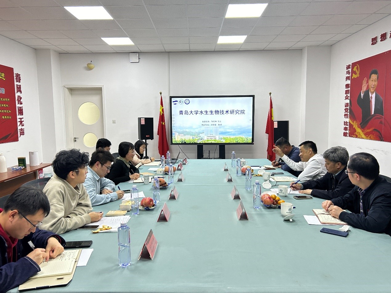 117日,山东省淡水渔业研究院党委书记、理事长轩子群带领资源环境研究中心、遗传育种研究中心相关专家一行四人到访青岛大学水生生物技术研究院(以下简称“水生生物研究院”)并进行交流座谈。