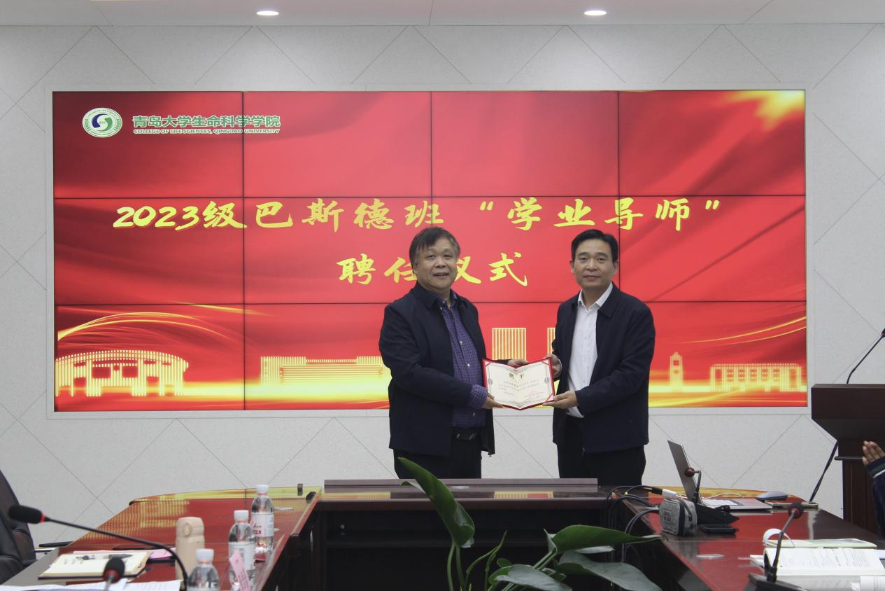 院长孙海新为李荣贵副校长颁发“学业导师”聘书。