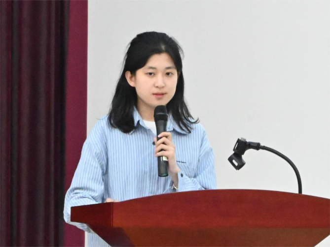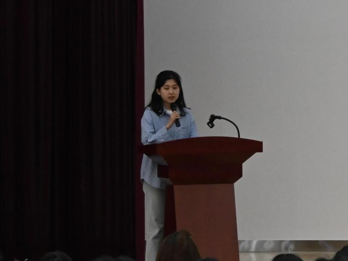 张乐怡从个人简介、思想成长、学业精进、综合发展等方面展开分享。她介绍了自己在思想上积极向党组织靠拢的历程,以及在学业上连续4学期排名第一、专业课成绩均达95分及以上的优异表现。同时,她分享了参与科研项目的经历,鼓励同学们敢于质疑、勇于创新,并提出“锚定目标,做长期主义者;高效学习,拒绝虚假努力;主动链接,打造成长共同体”的学习建议。