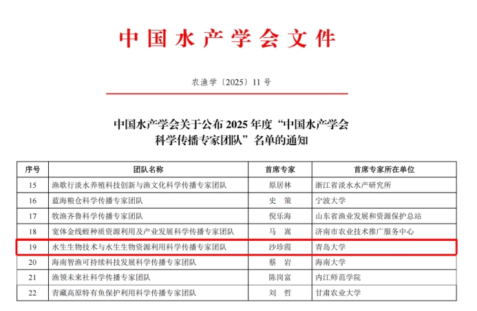 近日,中国水产学会正式发布《关于公布2025年度“中国水产学会科学传播专家团队”名单的通知》,永利国际(中国)官方网站