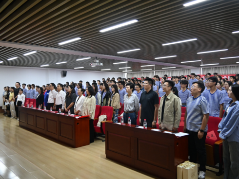 大会在庄严国歌声中拉开帷幕,激昂旋律点燃师生爱国热情,亦让新生深刻体悟中国青年与青大生科人的责任担当。