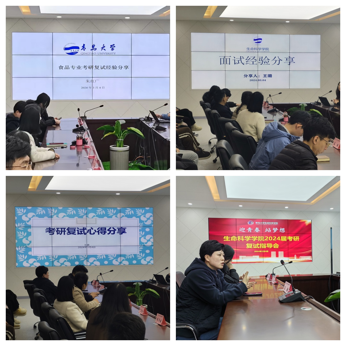 党委副书记张雪蕾、副院长孙海新、院长助理丁晓腾、生物技术系主任王超、两位王璐老师、以及朱红广、唐淑玮、崔坤鹏等多位老师到场,为2024届考研学子进行复试指导。