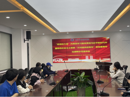 会上,研究生会主席孙嘉晨带领大家观看习近平新时代中国特色社会主义思想完场宣讲视频,进一步了解习近平新时代中国特色社会主义思想的时代意义,在示范宣讲会环节,团中央青年讲师团成员分别围绕“伟大变革”“思想伟力”“光明前景”“青春奋斗”主题进行宣讲,深入透彻的理论阐释、鲜活生动的成就解读、真实感人的建功故事打动了在场观众。