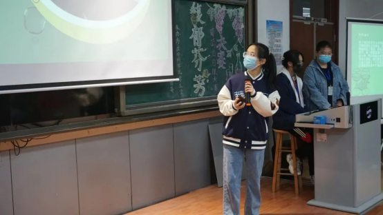 主持人宣布比赛开始后各队汇报员依次上台按照前期准备、酿酒过程、成果展示、心得体会的顺序分享了葡萄酒的“诞生与成长”过程并制作了精美的PPT展示。在第一大组同学精彩的汇报后,举办了有奖问答环节。第二大组队员汇报完毕后,现场三只队伍派出代表参与了“寻找自己组葡萄酒”的趣味游戏,品鉴多组参赛选手酿造的葡萄酒。