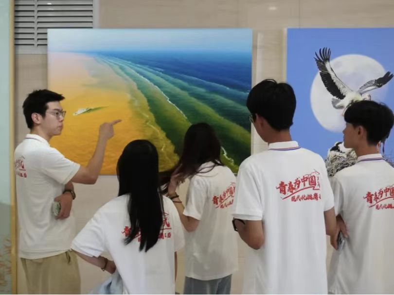 为深入解读黄河文化的内涵与时代价值,引导广大青年学子深入学习贯彻习近平总书记关于黄河流域生态保护和高质量发展的重要指示精神,将青春梦和成才梦融入传承和弘扬黄河文化的蓝图之中,2025年7月18日,青岛大学“泾渭青锋”乡村振兴实践团走进山东省东营市黄河文化馆,深挖黄河文化根脉激活传承动能,探究盐碱地治理的历史逻辑与创新路径。习近平总书记指出:“在我国5000多年文明史上,黄河流域有3000多年是全国政治、经济、文化中心。”在黄河流域,中华先民创造了光耀世界、博大精深的中华文化。历史上的黄河流域,农耕文明与游牧文明、海洋文明等不同形态的文明不断交流交融,不仅孕育形成了多民族融合统一的中华民族,更缔造了“万姓同根,万宗同源”的民族文化认同和“大一统”的民族主流意识,使黄河流域成为各民族守望相助、和谐共生的大家园。“前辈们用三十年攻克盐碱难题,我们要用新知识续写传奇。”实践团成员注视着新一代耐盐碱作物,从“大禹治水”到“新海水稻”,中华民族对这片土地的呐喊从未改变,从实验探究到田间试验,新时代的中国青年扎根中国大地,向时代发出青年学子的声音。离馆时,穹顶星图正投射出黄河入海的壮阔景象。粼粼波光中,文化馆墙上的金色箴言熠熠生辉:“保护黄河是事关中华民族伟大复兴的千秋大计。”学子们带着文化自信与科技火种奔赴田间,盐碱滩涂上,一曲政策引领、青春接力的绿色长歌正在奏响。当文化血脉与绿色创新交融,贫瘠的土地里绽放最绚烂的共富之花。黄河三角洲承载着中华民族农耕文明与自然博弈的史诗,奔涌的浪花里沉淀着五千年文明沉淀,在此见证黄河改道的自然伟力,反思人地关系的千年博弈,更从当代科技兴农实践中寻找“点碱成金”的振兴密码。