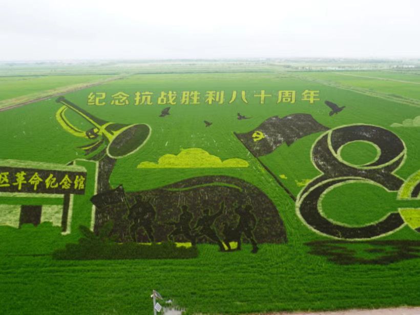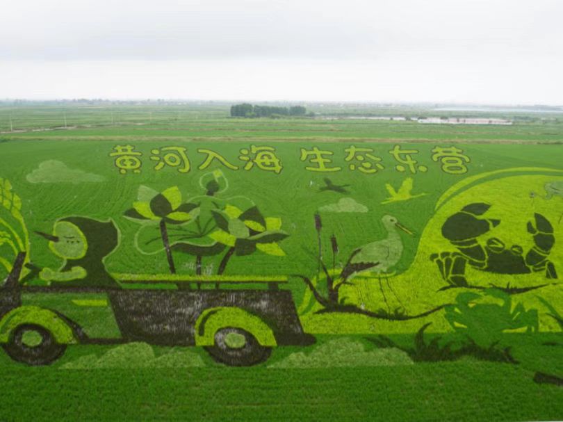 2025年7月22日,“泾渭青锋”实践团成员到达永安镇,跟随当地书记的脚步,了解永安镇稻田画里的“科技+文旅”振兴路。盛夏时节,山东省东营市垦利区永安镇的万亩稻田迎来了一年中最美的时光。微风拂过,绿浪翻滚间,两幅巨型3D彩色稻田画渐次铺展——“纪念抗战胜利八十周年”中,党旗飘扬;“黄河入海 生态东营”中,卡通形象灵动鲜活,火车车头奔驰向前仿佛正要开启新的旅程。这方曾因盐碱肆虐而荒芜的土地,如今正以“大地艺术”的姿态,讲述着科技赋能与文旅融合的乡村振兴故事。
