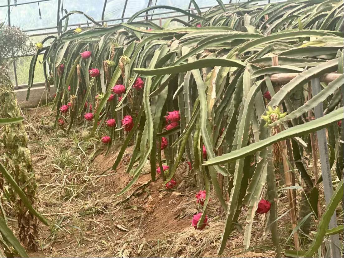 火龙果的玫红灯笼之外,其他的瓜果蔬菜同样硕果累累——珍珠芭乐悬垂于叶腋,巴西橡胶树如绿色穹柱直指棚顶,蕉穗弯垂时竹制支架托起新月状果实;还有开满白花的柠檬树、青铜柱般的木瓜都在多层覆膜的包裹中茂盛生长,智能系统将北方的风沙过滤为果香载体,让每颗果实都成为大地对“绿水青山就是金山银山”理念的渗透,生动诠释着“拓展人工智能农业应用场景”的宏阔蓝图。