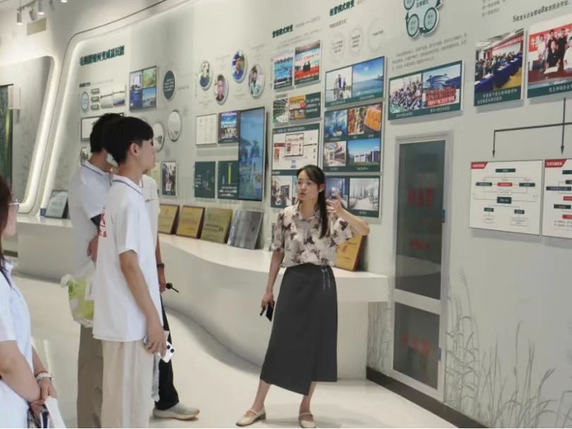 在走访调研中,实践团成员了解到,这些彩色水稻不仅颜值高,本质也是“实力派”。这些经过选育的耐盐碱水稻品种,不仅抗逆性强,亩产可达千斤以上,而且富含蛋白质和微量元素,秋收后深加工成的大米还能卖出好价钱。10余个来自中科院、中国农科院的高层次人才团队常驻于示范园中,他们培育的耐盐碱水稻、玉米等品种,不仅支撑起稻田画的“颜值”,更成为保障粮食安全的“硬核力量”。实践团成员在考察时,被眼前的景象深深震撼。“很难想象这片生机勃勃的田野,曾是寸草不生的盐碱地。”团队成员吴佳睿感叹道。从稻田画的创意设计到示范园的技术攻关,她看到的是科技与智慧如何让土地焕发新生。当地政府借盐碱地治理推进农旅融合,将稻田画打造成乡村旅游综合体。规划扩种主题画作,建科普馆与研学基地,办特色活动塑文旅IP,以科技智慧绘就振兴蓝图。