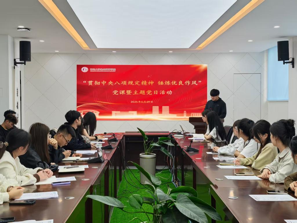 学生第一党支部和第二党支部联合组织开展了“贯彻中央八项规定精神 锤炼优良作风”党课暨主题党日活动。此次活动引导全体党员深刻领会中央八项规定精神,切实增强在新时代新征程中展现党员担当的自觉性和主动性。活动由学生第二党支部书记朴博文主持,全体学生党员积极参与,现场学习氛围浓厚。