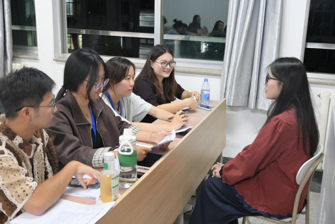 在金家岭校区西院1教308、309教室开展第二次面试。此轮面试聚焦对实践能力与岗位适配度的深度考察,新生们凭借充分的准备、清晰的逻辑与创新的想法从容应对,在面试过程中充分展现出对学生会工作的深刻理解。